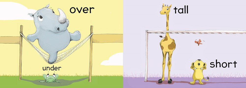 With a cast of characters including a zebra, toucan, and a hippo, everyday concepts such as up/down and in/out are hilariously demonstrated by animal friends on a playground.