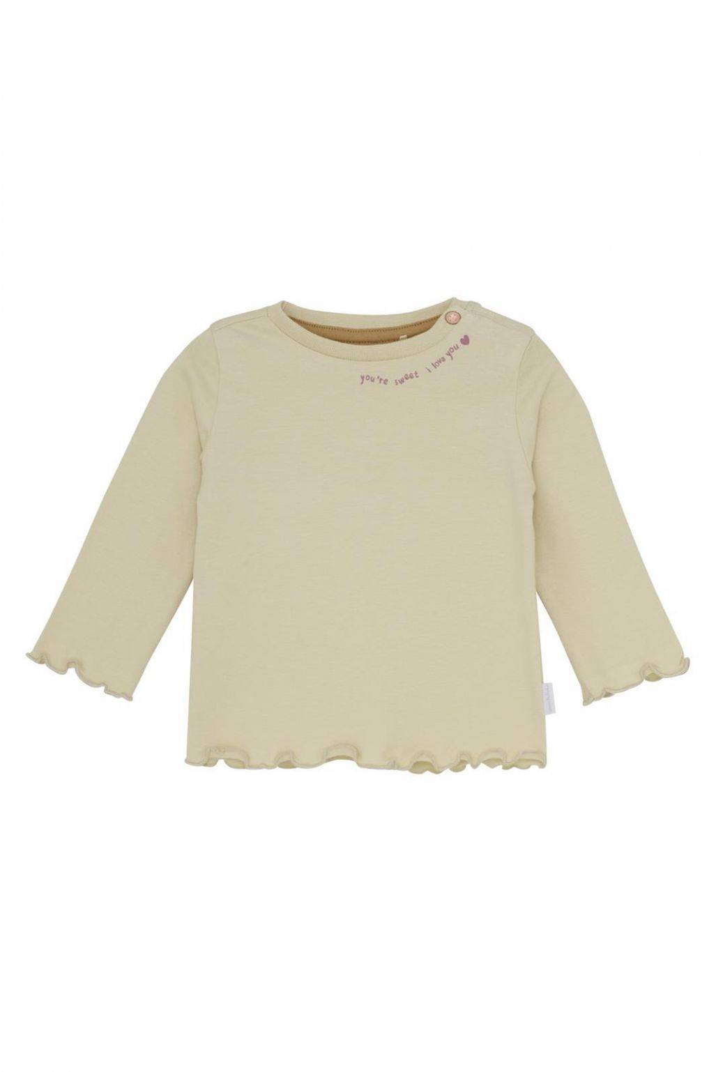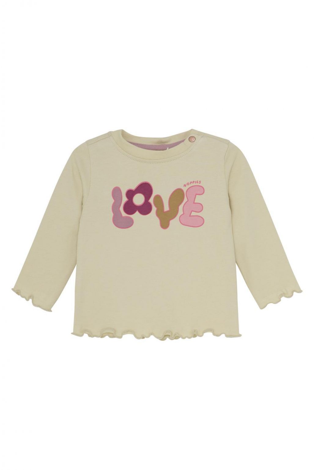 Girls' long sleeve Turpin from Noppies Baby, made from GOTS-certified cotton (CU1392474), in a soft jersey quality. The item has a solid color with a placed print on the front. The long sleeve features a round neckline with a snap button and long sleeves. With GOTS cotton, you're making the best choice for yourself, your child, and the world. From the environmentally conscious way the cotton is produced to the ban on child labor, everything meets high standards. And it’s truly wonderful to wear!