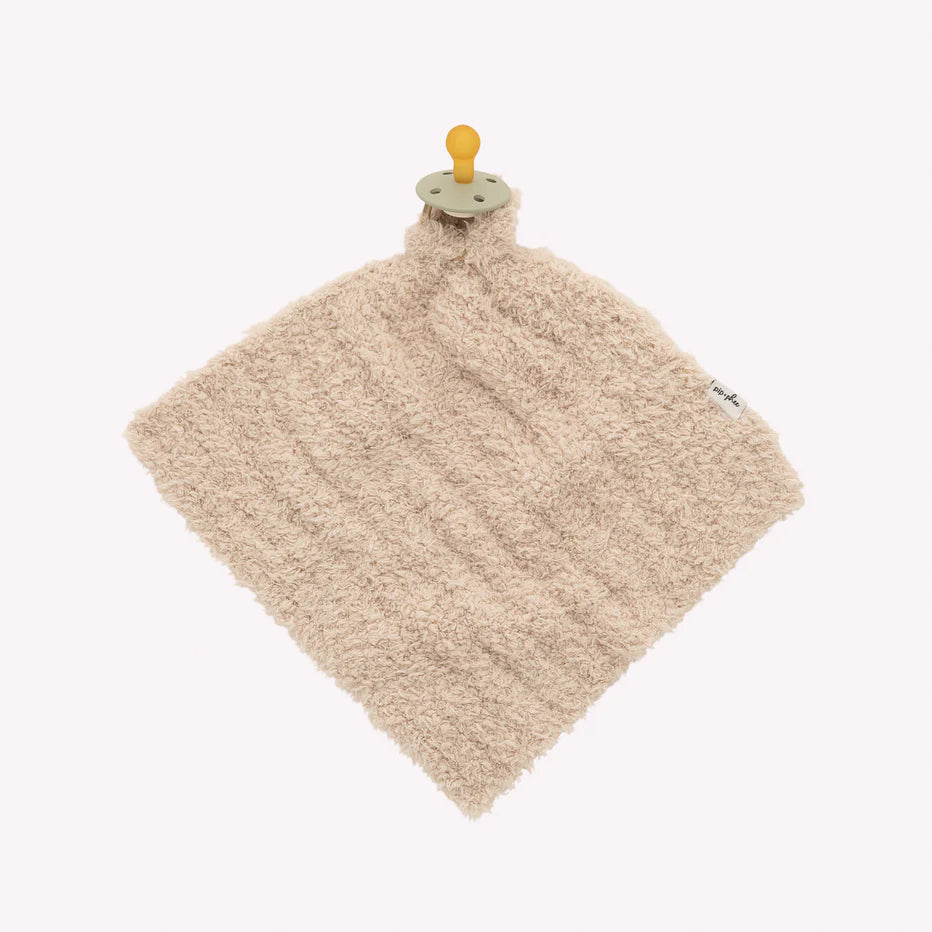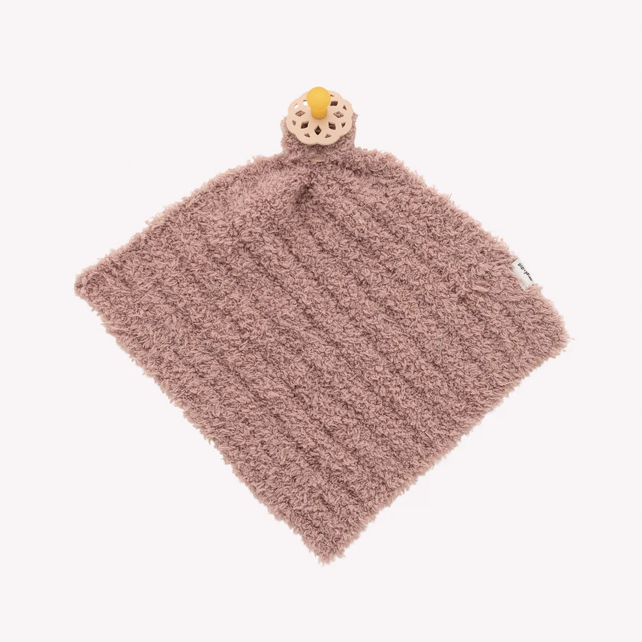 Teeny Blanket (9" x 9") – A petite and adorable option for little hands, featuring a slit in the corner to double as a pacifier holder. Compatible with any pacifier, this blanket grows with your child, transitioning from a pacifier holder to a cuddly companion.
